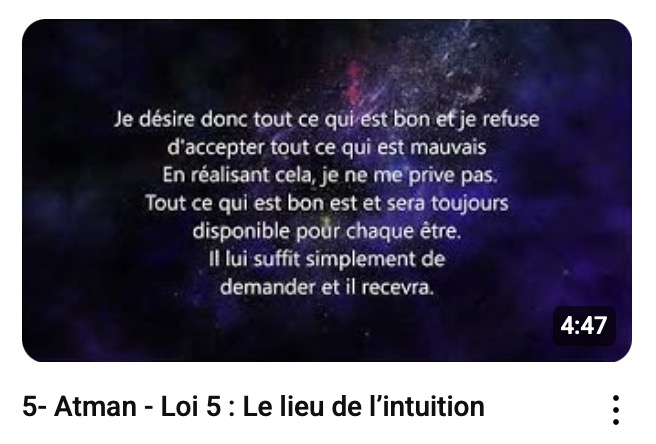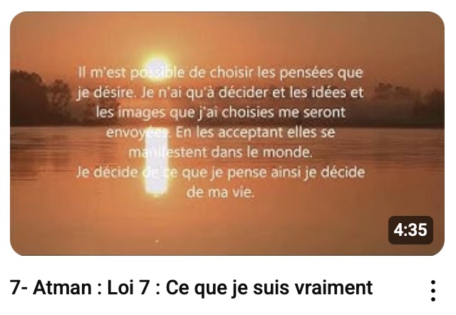 ÂTMAN : Les vidéos de 5 minutes Atman appartiennent à une série de 12 méditations formant une séance complète de 60 minutes. Elles s’écoutent dans le calme. Les paroles en fond parfois peu audibles, sont conçues précisément pour agir sur l’inconscient et soutenir l’alignement intérieur. Même en cas d’endormissement, seules les informations compatibles avec votre système de croyances profond seront intégrées. Observez les effets au fil des jours.